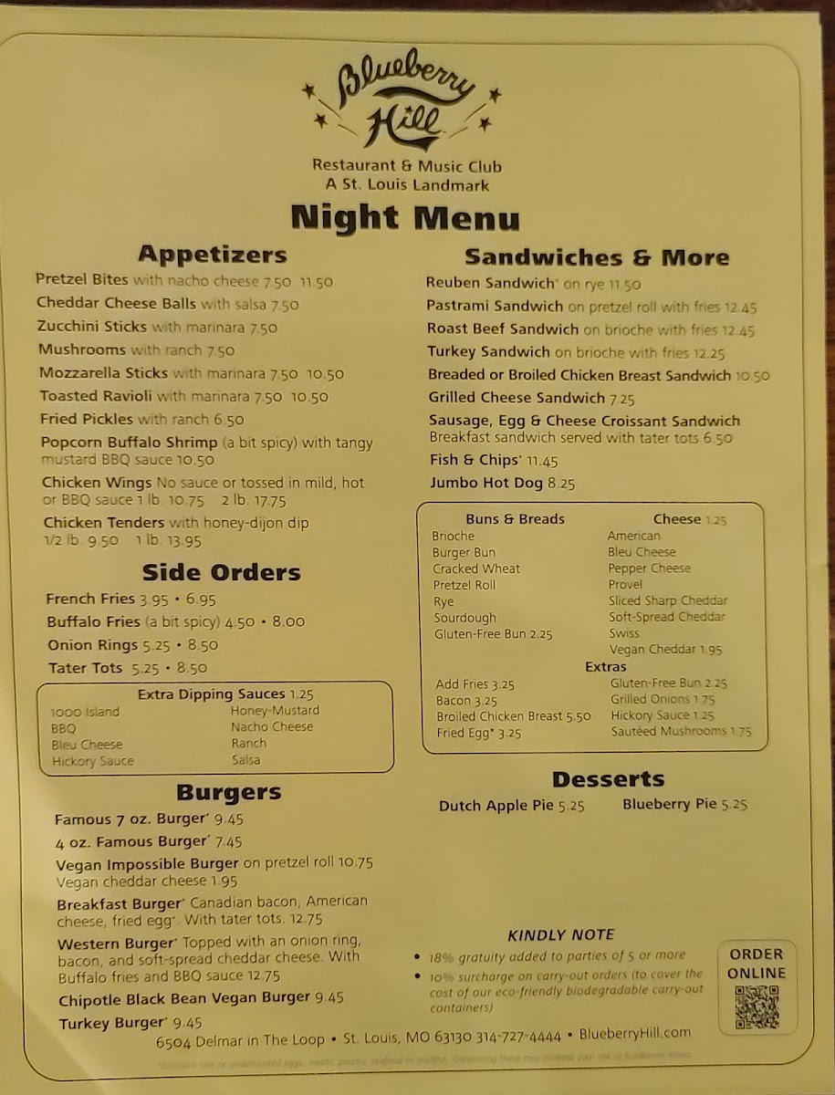 Welcome to Blueberry Hill, a unique gem nestled at 6504 Delmar Blvd in University City, MO. This eclectic restaurant doubles as a museum, boasting an impressive collection of vintage memorabilia that creates a lively atmosphere. The intriguing decor engages guests, evoking nostalgia while providing a pleasant dining experience.
